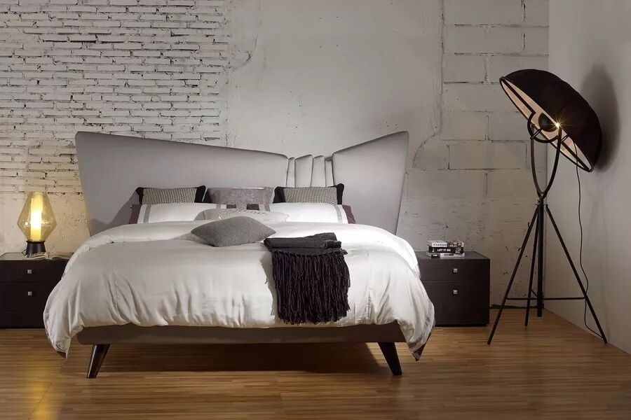 设计师认为床是卧室的主角,二人世界的中心,应是浪漫、活泼与众不同的,所以这款床突破常规,故意左右不均等,暗合男女形体上的不均等,但在视觉心理上却达到完美的平衡,丝毫不感觉到唐突。